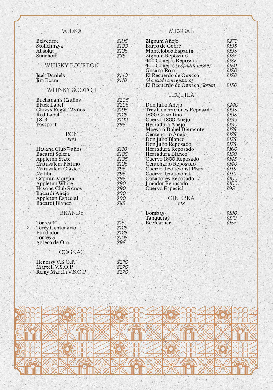 Bebidas, Cervezas, Cocteles, Licores / Beverages, Beers, Cocktails and Liquors
